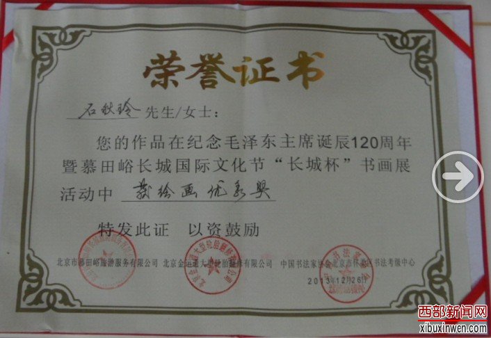 实力派名画家石秋玲个人荣誉证书
