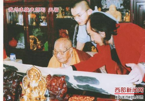 “我给本焕长老行礼,朋友介绍说:‘这是从北京来的著名书画家程文鸣老师,专程来看望您老人家的。’老人听后微笑点头示意说:‘好!好!’我说:‘给您老带了个礼物,给您老写了两个字:天福。’老人家说:‘打开看看。’随后,在场的弟子们把字展开,本老仔细地从上到下,从左至右地看着问到,为什么写这两个字啊?是你写的吗?今年多大了等等。我说:‘是我写的,是祝您老人家添福添寿,天天有福,我四十有半了。’此时的老人家边听边点头,并伸出大拇指说:‘好!好!’本焕长老开示我说:‘人哪,不能跟天比,人是人,天是天,人有福就行啦。’