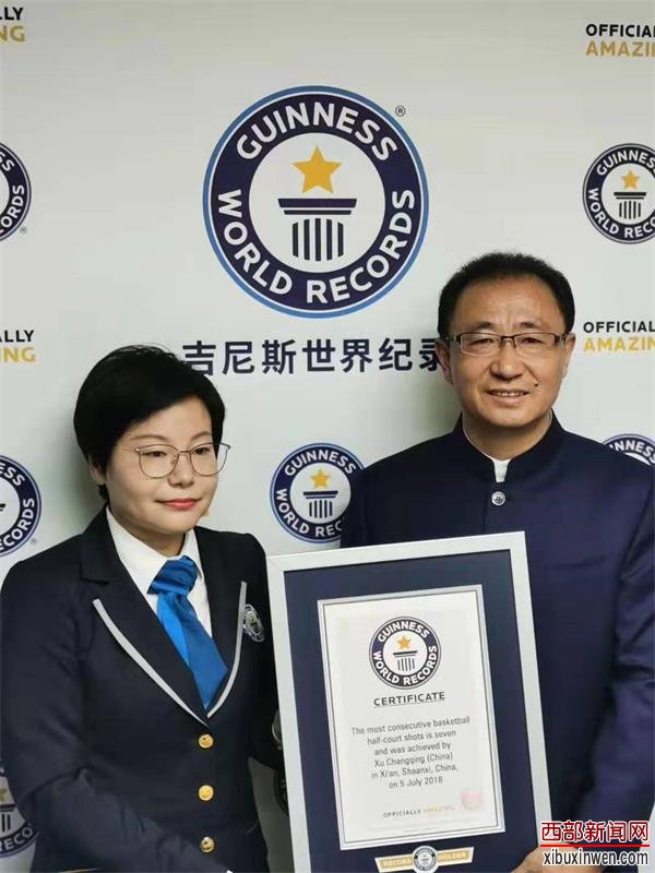 奇迹在坚持中诞生。2018年7月4日,还是在西安培华学院体育馆,在挥汗如雨的练习中,已近知天命之年的业余篮球运动员徐长清,在篮球场半场线外,连续命中7个超远距离投篮。7月21日,在同一场地,他再次打破了自己2016年创造的超远距离投篮6连中的吉尼斯世界纪录。经向吉尼斯世界纪录申报审批,于2019年2月14日,吉尼斯官方正式宣布“Mostconsecutivebasketballhalf-courtshots”这项世界纪录由徐长清挑战成功并颁发了证书。
