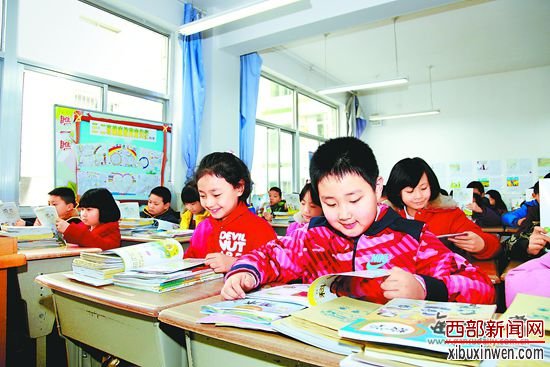 3月1日,兰州市城关区静宁路小学的孩子们高兴地翻阅领到的新书。寒假结束,兰州市大部分中小学3月2日正式开学。