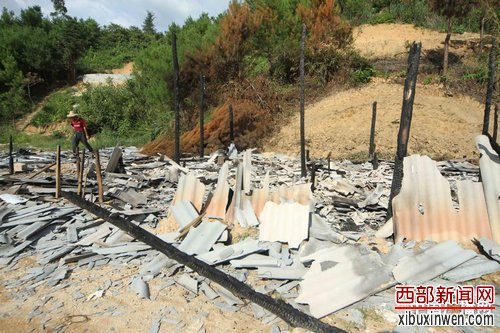 被村民烧毁的工厂板房(中广网记者 张垒 摄)