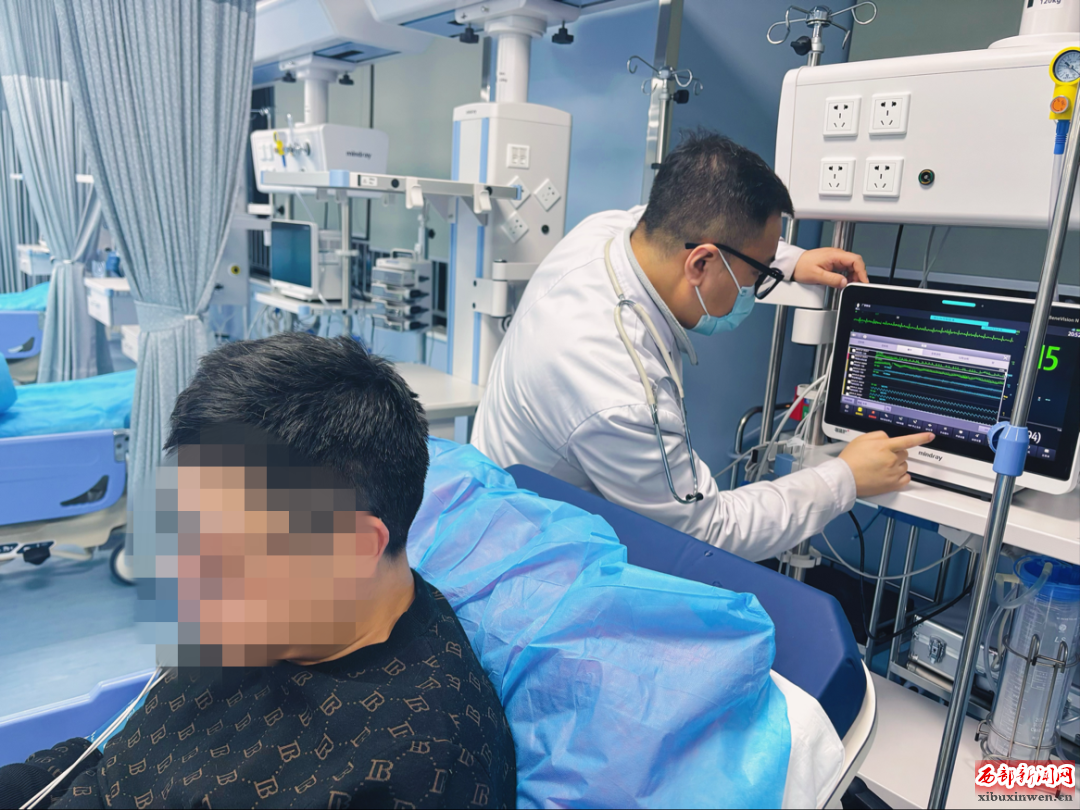阳光讯(记者郑亚雷)近日,西安市中心医院经开院区急诊科上演了一场紧张而有序的急救行动。一名中年男性患者突发心悸,心跳异常剧烈,并伴有头晕目眩,站立不稳等症状,紧急前往该科室求救。