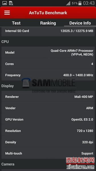 此次国外网站SamMobile泄露的三星GALAXY S5 Mini的系统截图主要为我们确认了该机在硬件方面的一些配置,比如触控屏分辨率确实为720p规格,搭载主频为1.4GHz的Exynos 3470四核处理器,并集成Mali-400 MP4 GPU,拥有800万像素主摄像头,并且210万像素前置镜头还支持1080p分辨率视频录制等等。