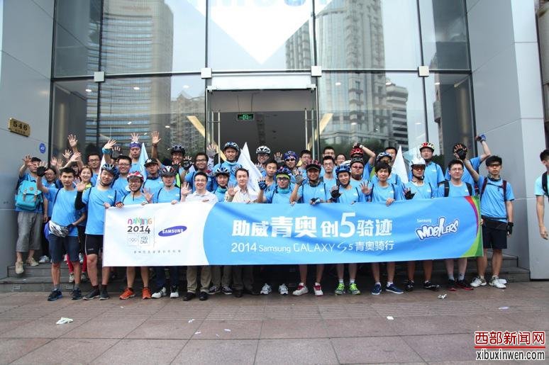 西部新闻网讯 【2014年7月19日,上海】第二届青年奥林匹克运动会全球合作伙伴——三星电子发起的“助威青奥创5骑迹”骑行接力活动于今日正式抵达上海。青春新势力Samsung Mob!lers整装待发,将全程完成沈阳、北京、上海、广州、成都五大城市骑行接力的Mob!lers代表张翔也来到了活动现场,带来了沈阳站和北京站的祝福,并将接力棒——三星GALAXY S5传递到上海,号召更多年轻人积极投身于运动事业中,让“分享青春,共筑未来”的青奥精神传递到每一个角落,让青奥的助威声浪响彻全国。