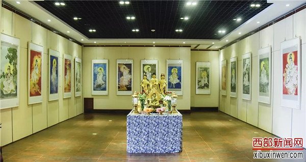 本次展览共展出李敏老师精心创作的佛教题材作品30幅,还有山水花鸟等新工笔画作品20幅,展览将持续到8月末。