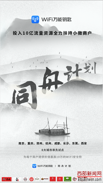 WiFi万能钥匙“同舟计划”将在南京、重庆、郑州、杭州、成都、长沙、东莞、西安八个城市率先启动,重点扶持餐饮美食、酒店旅游、休闲娱乐、教育培训、商场零售等不同场景商户。通过WiFi万能钥匙“本地频道”,帮助商户打通与消费者之间的连接渠道,促进客流。目前,南京鸭得堡老鸭粉丝汤、重庆临江门老火锅、郑州阿五黄河大鲤鱼等当地知名餐饮商户已经加入同舟计划。