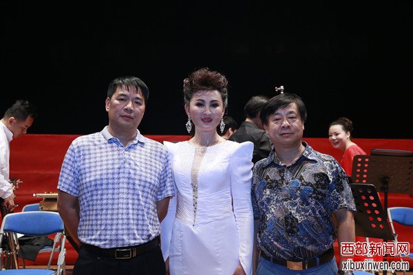 著名女高音歌唱家、国家一级演员高咏梅(中)和昆明聂耳交响乐团书记兼团长廖勇(左)副团长陈曦(右)合影