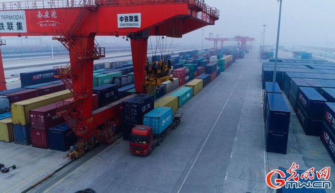 11月13日—16日,“‘一带一路’这五年”中外学者交流活动在西安举办。此次活动由中央网信办网络评论工作局指导,光明网主办,陕西省委网信办、中国铁路西安局集团有限公司共同协办。来自外交部、中科院、中国社科院、中国人民大学、北京师范大学、外交学院、上海社科院等国内高校和科研机构,以及来自美国、德国、保加利亚、尼泊尔等国家的外籍专家,13家中央新闻网站的媒体采编人员参与此次调研活动。图为中欧班列。(季春红、张瑜/图)