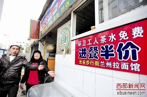 西部新闻网讯(记者文风 楚天都市报记者刘利鹏 魏铼)49岁的回族大婶尕赛胖胖的,普通话说得不太溜时就一脸笑,看起来很亲切。但前天说起烦心事,大婶收起笑容直摊手,语气里掩饰不住失落:“我也不知道怎么回事,为什么环卫工半价也不来吃?”——尕赛大婶一个月前在店外贴了张告示:环卫工进餐半价,茶水免费。