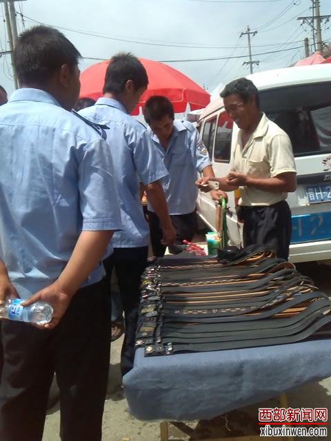 记者亲眼目睹了三岔城管文明执法的野蛮行径。五六个人,袒胸露怀,身穿城管制服,有的嘴叼香烟,有的手摇花扇,其中一人手里攥着一大沓收来的钞票。逐一过摊,根据卖的东西多少,和所卖货物的价值,再参考人情的远近程度,还的看城管自己的心情,想要多少就是多少。想给少、不给,对不起,自己下手,把钱抢过来的同时,还要”稍带”点自己有用想要的东西,就连一指宽的个纸条条也没有,比拿自己的东西都随便、体面。城管所到之处鸡飞狗跳,商户们个个无可奈何地但忍无可忍,一卖皮带的内蒙商户气愤的感慨:这是什么世道,过去土匪抢东西还有点怕和羞的味道,这家伙们身穿制服,光天化日明抢明夺,怎么共产党的社会就没人敢管一管?