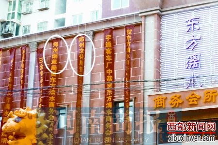 郑州一商务会所开业 悬挂多个政府部门祝贺条幅