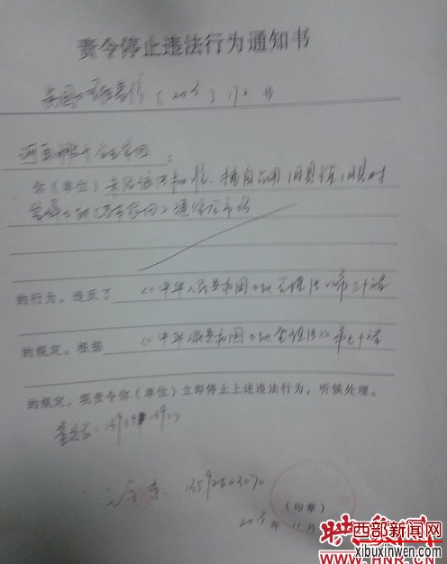 提起耕地被毁,程队长面有难色。“从下发停工通知到现在,企业一直都没有向我们提供有关材料。我们没有扣押设备的权力,也没有强行拆除的权力。如果企业继续施工,我们再发现就再次下达停工通知书。如果他们仍不接受处理,我们将向县政府和洛阳市国土资源局汇报。”