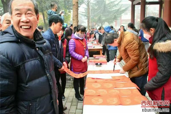 西部新闻网记者了解到,活动现场人山人海,水泄不通,盛况空前。当天前来喝粥的人达到两万人次,送春联人员达5000余幅!陕西省书法协会副主席麻天阔领衔陕西省中青年书法名家李小明丶王永坡丶杨小琪丶赵刚丶韩春涛丶徐苑芝、李建西、谢涛丶杜小民、张方平、雷新颖、张刚、李亚龙丶石亮、韩胜辉、许斌等近二十位书法家挥毫泼墨为大家送上吉语祝福。从早上到中午快两点每个书法家桌前群众都排长队等候春联丶福字,就连事先带去省青书协统一印制好的春联都被一抢而空…