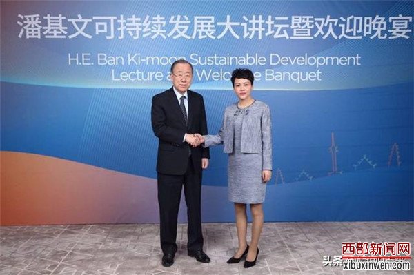 【当代实力派书法家石朝晖老师陪同联合国秘书长潘基文先生等一行参观考察咸阳清渭楼,其书法作品《上善若水》被联合国秘书长潘基文先生收藏】