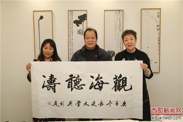 长安大学中国书画研究院常务副院长吴引定与资深地产营销顾问古素青及关雎学社总编、主持人王禹心合影