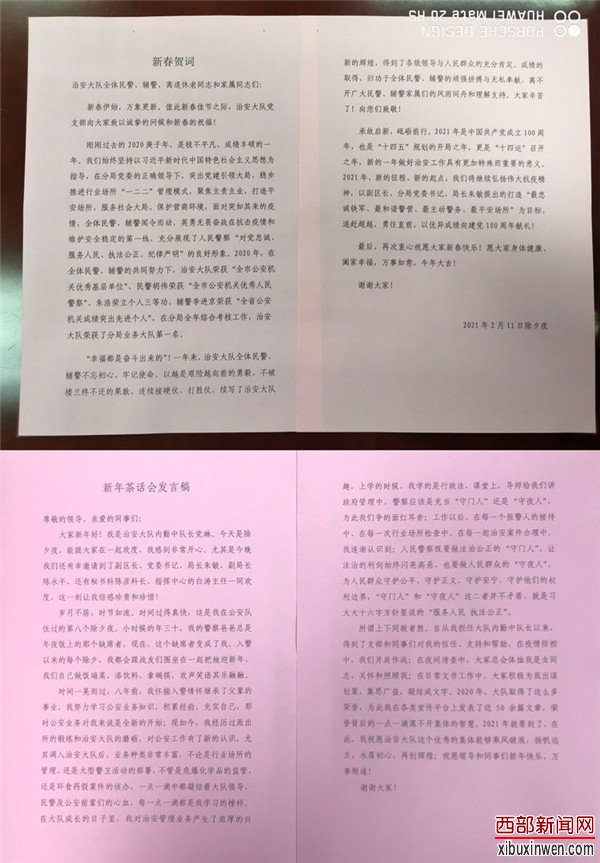 大年三十除夕夜,西安市公安局碑林分局治安大队的会议室里热闹非凡,为了让留在单位值班备勤的大队民警感受到年的氛围,治安大队专门提前准备了茶点、水果、饮料和咖啡,在年夜饭之后,进行了一场茶话会。为了办好这场茶话会,让那些不能回家过年的民警感受到家的温暖和节日的氛围,大队支部提前几天,就张罗着在会议室里挂上了灯笼和彩带,大队会议室门口也贴上了民警自发写好的春联。在年夜饭后,治安大队隆重举行了2021年迎新春除夕之夜茶话会。留在单位值班备勤的民警一起在新年来临之际,围坐在会议室,共话平安。