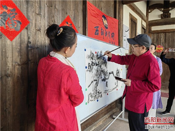 李荣先生一行实地考察了梁厝历史文化街区,首先拜访了97岁高龄的梁厝红色文化老人代表梁敬定并献画《江山如画》!同时以《如何欣赏中国画》为题向梁厝村民以及景区的游客结合自已的画作,就中国花鸟山水人物画构图、笔墨、色彩等基本要素进行了深入浅出的讲解,受到了大家的欢迎。接着,又现场写生,勾画了一幅四尺梁厝村具有代表性的古风、古韵、古村的山水画《南海修德·印象梁厝》,受到了福州市美术界的一致好评,活动现场,美国福建书法家协会副会长、琅岐书画社副社长、福州市台江区书法家协会副主席江典源书法题款了《南海修德·印象梁厝》。