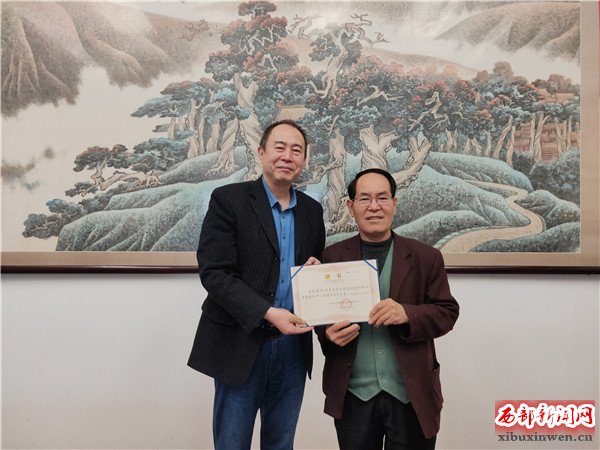 最后省社科院分别向陈宝风、史永哲、吴建华颁发了书画艺术中心特聘研究员证书,向祝金刚、雷长安、何平、墨池、荆平安、杨博、陈双军等7位专家颁发了特聘书画艺术家证书。