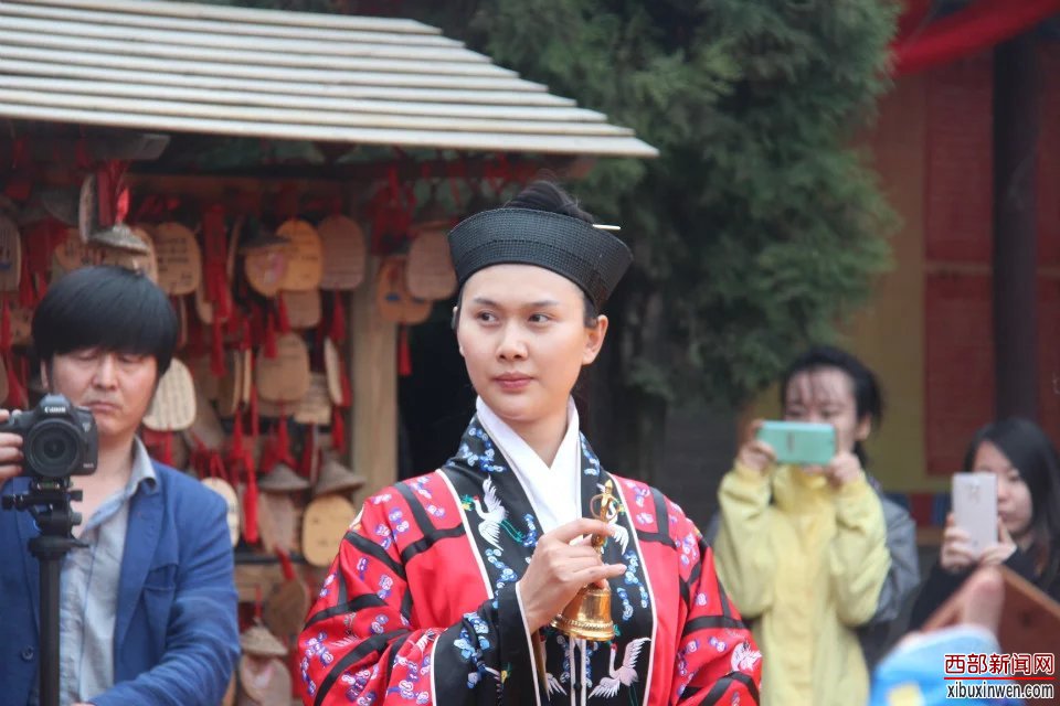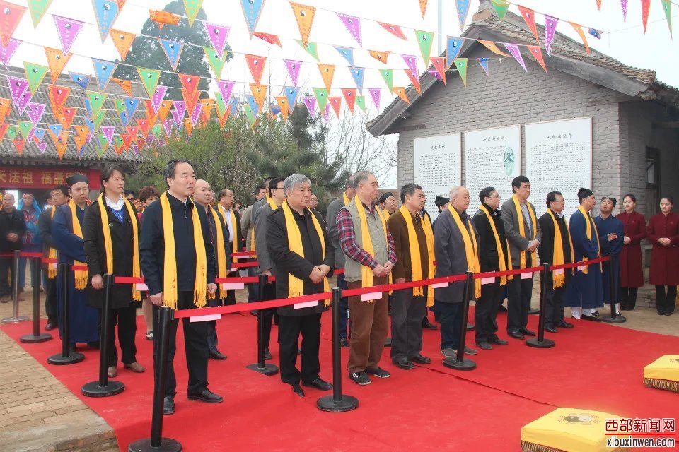 中国道教协会副秘书长、陕西省道教协会副会长、西安市道教协会会长刘世天道长恭读祭文,参加祭祖的全体人员向中华民族的伟大始祖伏羲大帝和女娲娘娘三稽首,感恩祖德,福佑中华。