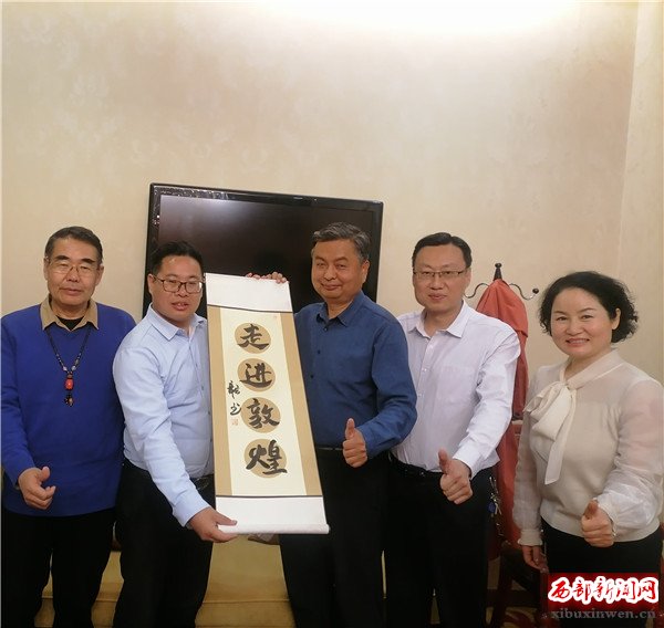 西安是长安画派的诞生地,敦煌画派也在敦煌应运而生。作为长安画派传承人著名山水画家崔振宽的弟子李荣教授专门拜访了敦煌画派艺术研究院院长、著名画家李建英,著名王峰画家等文化艺术界以及教育界人士,双方就敦煌壁画传承与创新,青少年发扬敦煌文化精神,增強文化自信,深化“中国研学旅游目的地”建设进行了深入的交流,达成了多项合作意向。