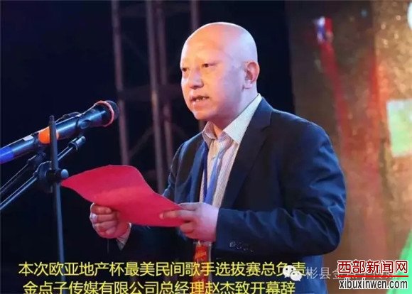 “欧亚地产杯”彬县最美民间公益歌手选拔赛总负责、金点子传媒有限公司总经理赵杰致辞