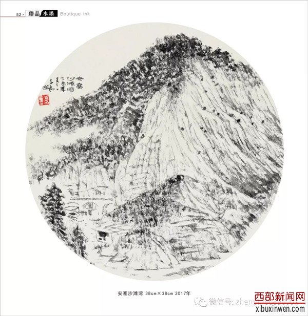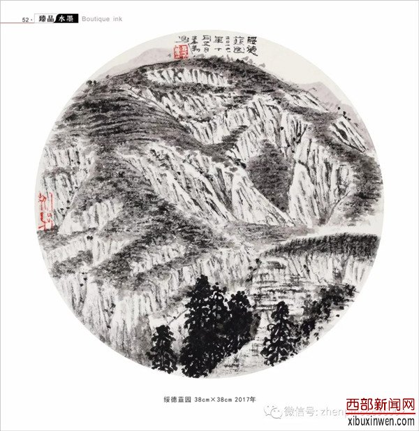 他作品在表现黄土高原为主的同时,也表现秦岭、太行、巴蜀等山系。他描绘的陕北犷莽无垠的黄土高原,贫瘠的山梁沟壑,一排排挂着红辣椒的窑洞……一股粗犷苍凉的气息扑面而来,心底久违的激情猛然迸发,让人瞬间明白,这厚重的黄土孕育的千年文脉,余音仿佛就在耳畔回响,他的脉搏依旧在生生不息的跳动。像一位饱经沧桑的老者,娓娓讲述着过去的故事,也像少年,我们可以感受到他蓬勃的朝气。这就是他的绘画,那放而不野,雄而不浮,朴实、扎实、厚实,传统中见新意,笔墨中见功夫的独特风格,给人传递的力量和魅力。