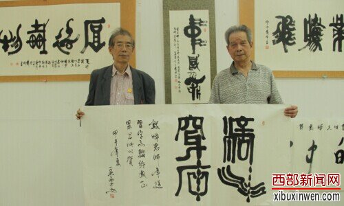 人民日报社驻陕西记者站原站长、西北联合党支部书记孟西安现场泼墨“滴水穿石”
