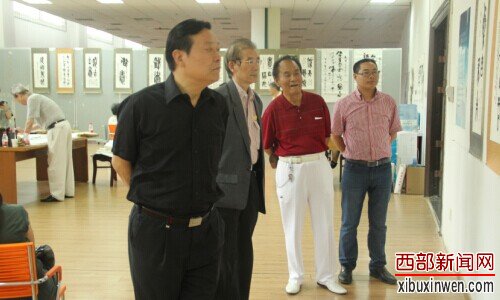 雷涛、孟西安、李少颇和西部新闻网总编张龙参观戴晔老师篆书展