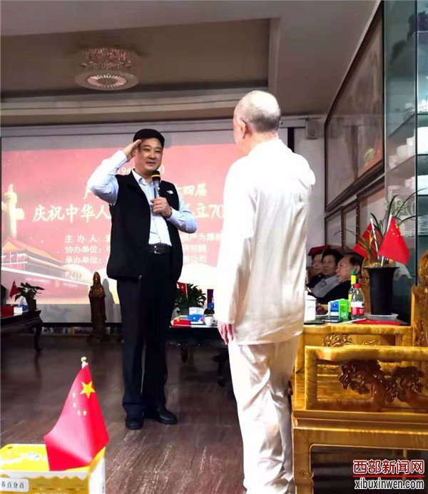 金秋送爽山河美,丹桂飘香庆辉煌,在中华人民共和国成立70周年即将到来之时,我们在这里欢聚一堂共同庆祝伟大祖国70华诞。此活动由爱党爱国爱民拥军楷模、养生长寿泰斗严为厚教授承办。参加此活动的有四川省原政协副主席工商联主席何志尧、四川省工商联原副主席钱卫东、原成都军区联勤部政委陈开礼将军、原国家中医药管理局质量司标准处负责人国药集团药业股份有限公司原规划发展总监金建武、同仁堂总经理泰山堂医养集团总裁毛正林、成都文乐书画院院长赵文乐、会社梁文化产业董事长梁洪、四川文化网总编辑孙尚举以及华西医院专家、中华医药杨枝露长寿研究院的专家团成员、严为厚老师的徒弟们、朋友们70余人在一起共同庆祝中华人民共和国成立70周年。