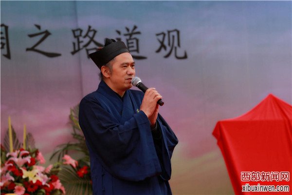 随后,雁塔区宗教局代表柴晓茹女士宣读了雁塔区宗教事务局对青华宫重建的批复。中国道教协会副会长、陕西道教协会会长胡诚林道长代表陕西省道教界表示对青华宫重建的祝贺,同时也发表了讲话。西安市慈善协会会长陈振虎先生,陕西马氏集团董事长、一代跤王马胜利先生分别代表来宾登台致辞。
