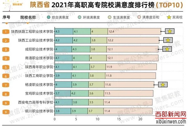 据聚焦职教消息称:从满意度排行榜中可以看到,“双高校”的占比很高,可以说,综合实力越强的学校,学生评价满意度越高。本次陕西上榜的十所高职院校,有省属院校五所,行业院校一所和地市院校四所,十所院校当中,“双高校”占有四所。(张栢溪)
