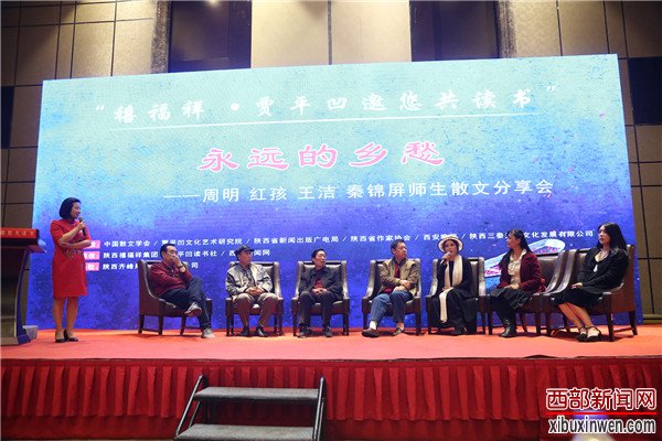 西部新闻网讯 (记者 张丽 摄影 田建国)2017年10月28日,由贾平凹文化艺术研究院总策划,中国散文学会、贾平凹文化艺术研究院、陕西省新闻出版广电局、陕西省作家协会、西安晚报、陕西三秦天下文化发展有限公司联合主办,陕西禧福祥集团、贾平凹读书社、西部新闻网共同承办,陕西齐峰果业有限责任公司协办,永远的乡愁——周明红孩王洁秦锦屏师生散文分享会在西安举行。这也是“禧福祥•贾平凹邀您共读书”全民阅读公益活动的第61期。西部新闻网全程报道了本次活动!