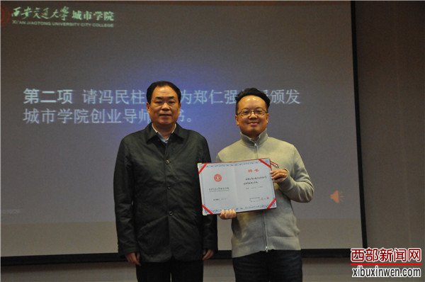西安交通大学城市学院的演讲现场,西安交通大学城市学院正式聘请郑仁强为西安交通大学城市学院的兼职教授及学院创新创业导师。