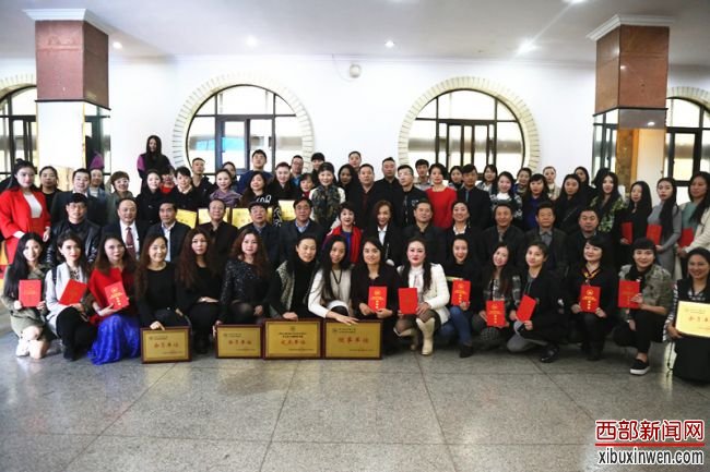 陕西省文联驻会副主席李仲谋为陕西省丝绸之路东方舞文化艺术研究会会长吴燕女士颁发会长单位金牌