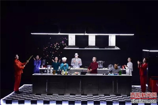 走进剧场,直接映入眼帘的是一间厨房,好似一家大饭店的厨房操作间,不锈钢的灶台、不锈钢的油烟机、不锈钢的双开门冰箱、现代大街上的垃圾桶,以及灶台上的油盐酱醋、蔬菜、水果、鸡蛋等。这就是由西安话剧院火柴戏剧演出的话剧《哈姆雷特》先锋版给我的第一印象,开演前和一同前去的同事小声探讨:看他怎样把400年前的莎翁经典如何跨界演绎。