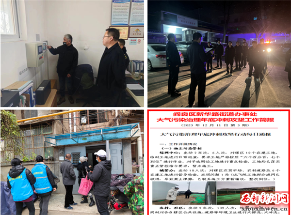 及时召开新华路街道大气污染治理冲刺攻坚会及大气污染防治工作推进会,传达学习上级重要会议精神,全面部署冬季大气污染防治工作;制定并组织实施《新华路街道办蓝天保卫战年底冲刺工作方案》《新华路街道办清洁取暖双替代工作年底冲刺攻坚行动方案》等文件,进一步明确目标、细化任务、压实责任、狠抓落实,协同推进大气污染治理各项措施落地见效。