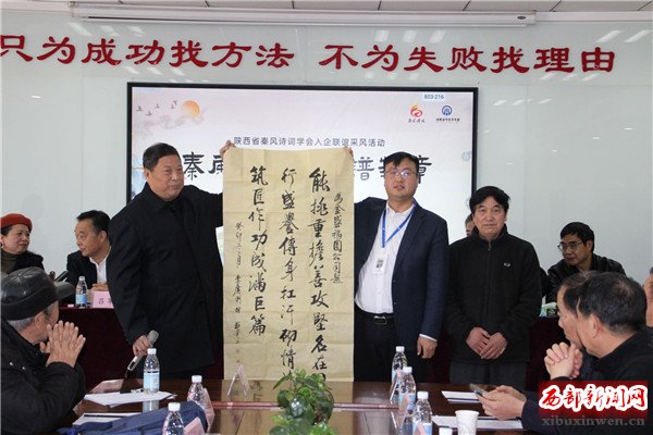 在习近平总书记文化思想的指引下,为弘扬中华优秀传统文化,贯彻落实省文联关于在全省开展文艺“六进”志愿服务活动的通知精神,推动传统诗词文化走进企业,丰富企业文化内涵,助力企业发展,展现中华优秀传统文化的魅力和时代风采,12月16日,陕西省秦风诗词学会组织来自各地的会员代表五十多人走进陕西恒丰汇智实业有限公司,进行了一场别开生面的采风联谊活动,受到恒丰集团公司的热烈欢迎,活动取得了圆满成功。