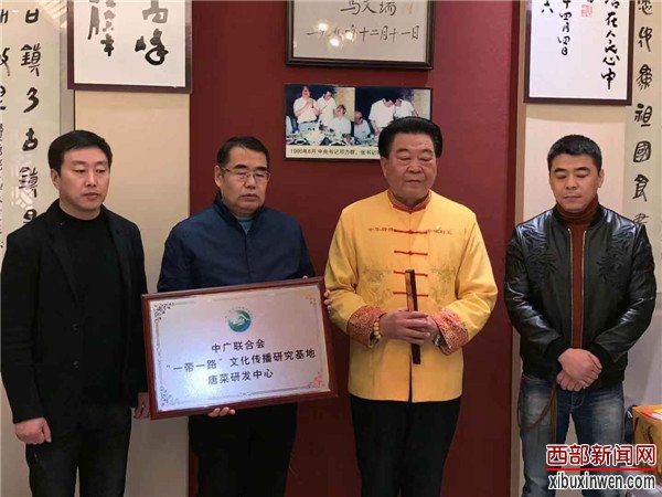 2018年12月19日,中广联合会一带一路“文化传播研究基地秘书长李荣将唐菜研发中心牌匾授予中华厨神、陕西周秦汉唐菜非遗传承人刘凤凯大师,弘扬中华饮食文化,发展‘’一带一路‘’商贸经济!