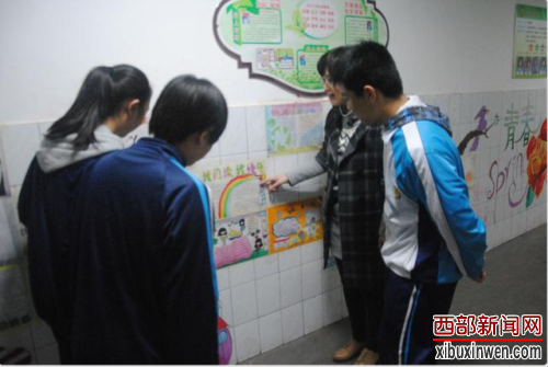 “忽如一夜春风来,千树万树梨花开”、“春色满园关不住,一枝红杏出墙来”……3月28日中午,记者来到了咸阳天王学校,还未走进校门,就被郎朗的读书声所吸引。学校各个教学楼的墙面上以及教师的过道内都写满了各种激人们上进的诗词。在教学楼下的绿色走廊中间,挂着“书香苑”三个大字,而牌子下面的那首《登鹳雀楼》更是气势磅礴、意境深远,瞬间让人有了一种积极探索和无限进取的情怀。这首诗,也一直激励着天王学校的师生们,如若“欲穷千里目”必得“更上一层楼”。