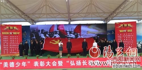 阳光讯(齐小伟 记者 董宁宁)10月19日下午,陈仓区第二届美德少年表彰大会暨“弘扬长征魂·同筑中国梦”文艺汇演在陈仓初中隆重举行,10名美德少年和10名提名奖获得者受到表彰。