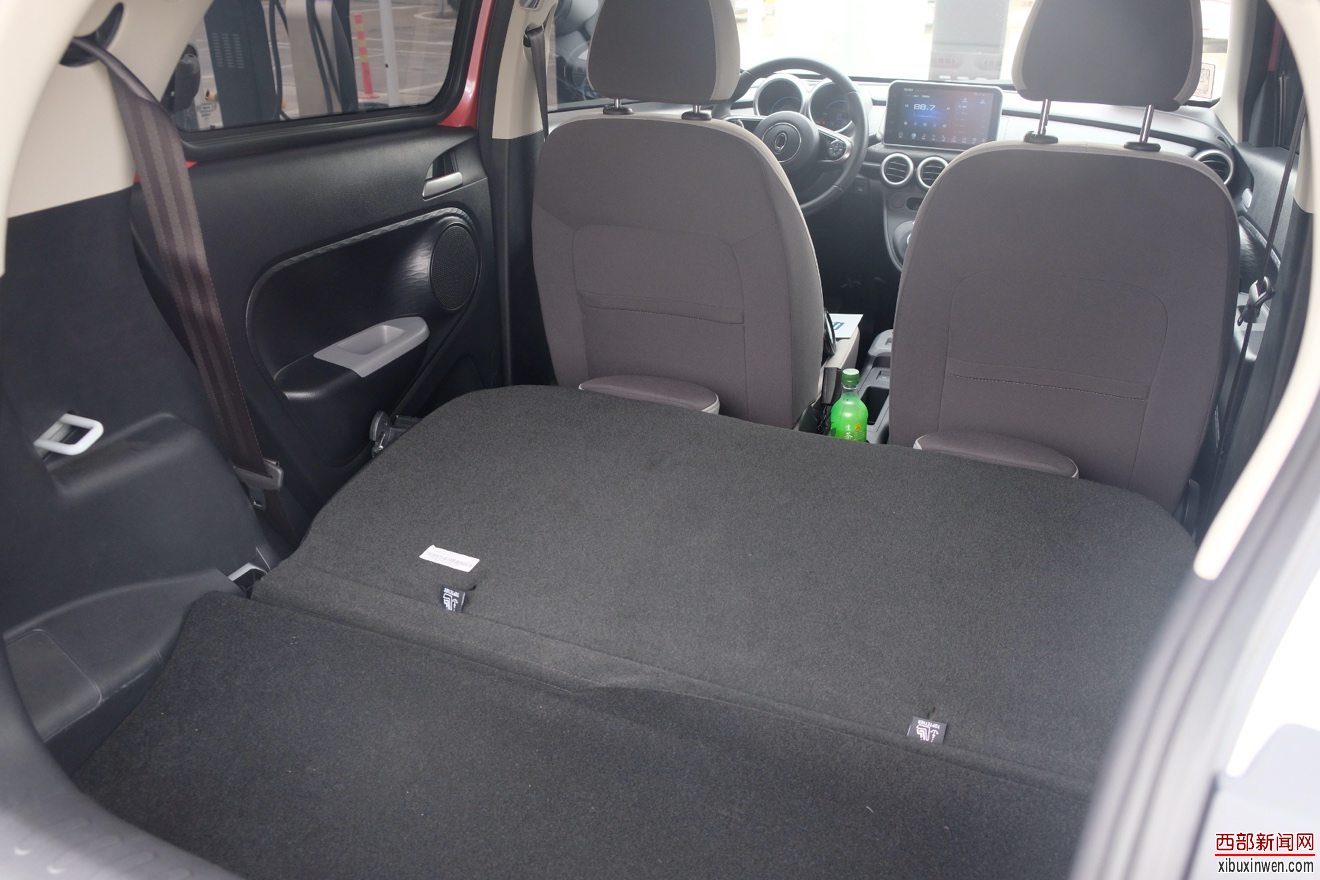 得益于原生的电动化平台,欧拉黑猫后排座椅支持完全放倒,空间利用更加灵活。