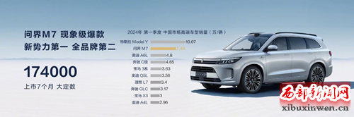 自2023年9月发布以来,问界新M7凭借卓越的用户体验,半年累计大定近18万辆,稳居2024年第一季度中国市场高端车型新势力第一,全品牌第二,无疑是新能源市场的佼佼者。