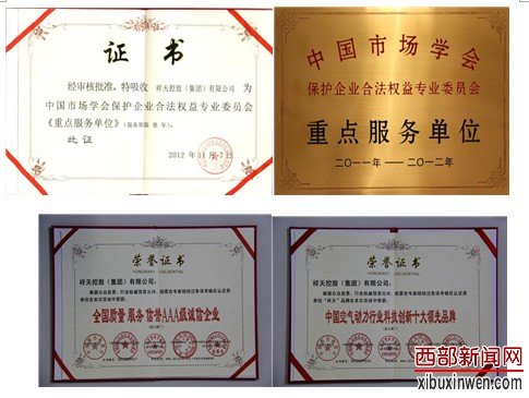祥天控股(集团)有限公司一路走来,荆棘无数,但祥天人用自己辛勤的汗水和追求卓越的精神逾越了一道又一道艰难的险阻,缔造了一项又一项精彩的记录,获得掌声无数以及各界人士的支持和认可。曾先后获得“全国质量服务信誉AAA级诚信企业”、“中国空气动力行业科技创新十大领先品牌”“和谐中国2012年度影响力人物十大杰出创新企业家”“中国经济最具发展潜力企业”等荣誉称号。