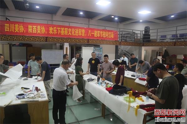 中国美术家协会理事四川省美术家协会主席梁时民、四川省美术家协会副主席张跃进、四川省美术家协会副主席兼成都美术家协会主席姚叶红、陕西美术家协会主席西安美院长郭线庐、中国美术家协会理事陕西省美术家协会党组书记驻会副主席吕骏涛走进渭滨,莅临活动现场。艺术家用他们的热情现场泼墨,为打造强军文化注入活力,向渭滨区人武部全体官兵表示慰问,以此庆祝“八一”建军节的来临。