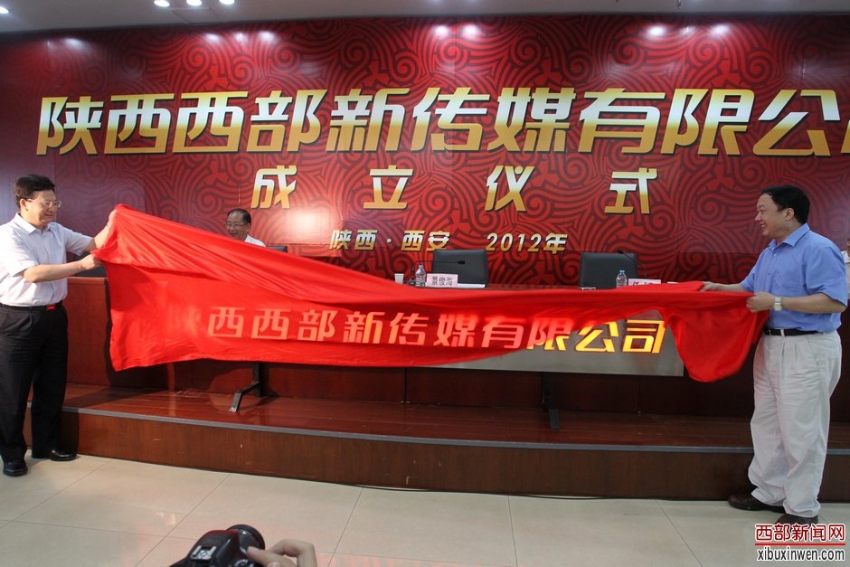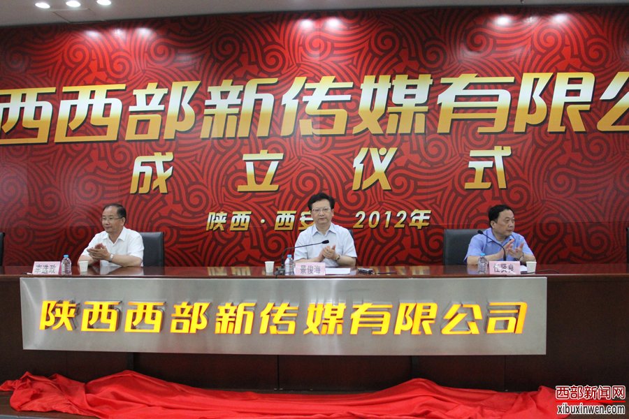 省委常委、副省长、省委宣传部部长景俊海为陕西西部新传媒有限公司揭牌。