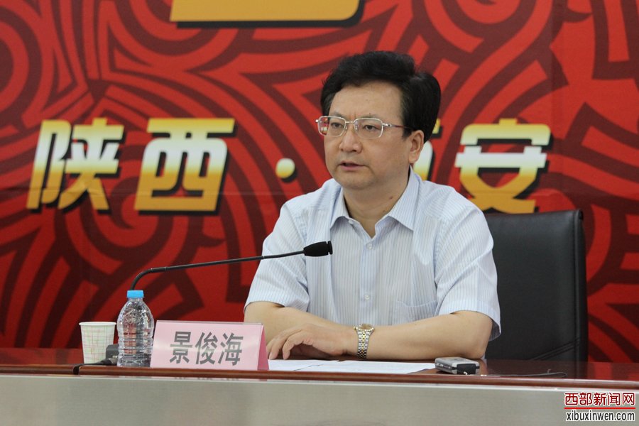 省委常委、副省长、省委宣传部部长景俊海出席仪式为陕西西部新传媒有限公司揭牌并讲话。