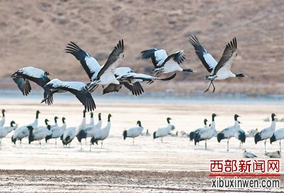 林周县是著名的黑颈鹤越冬地,每年10月中旬开始,有大批黑颈鹤迁徙到此。据介绍,2017年12月,林周县黑颈鹤数量稳定在1700只左右,最高达2000只左右。