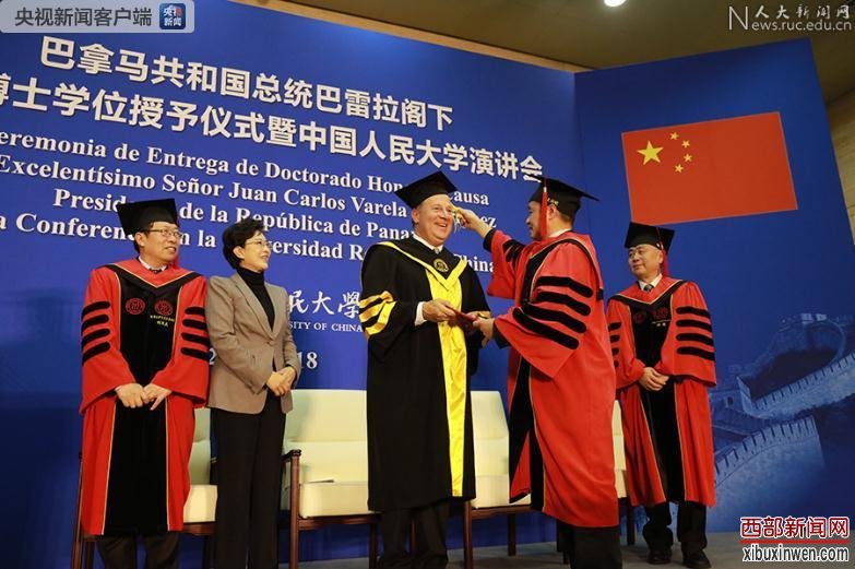 △这是2017年中国人民大学授予巴拿马总统巴雷拉名誉博士学位。(资料图片)