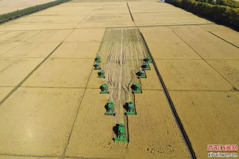 △9月23日中国农民丰收节当天,央视新闻频道对建三江大兴农场水稻秋收做了电视直播,这是直播时场景。(图片来源:建三江管理局官网)