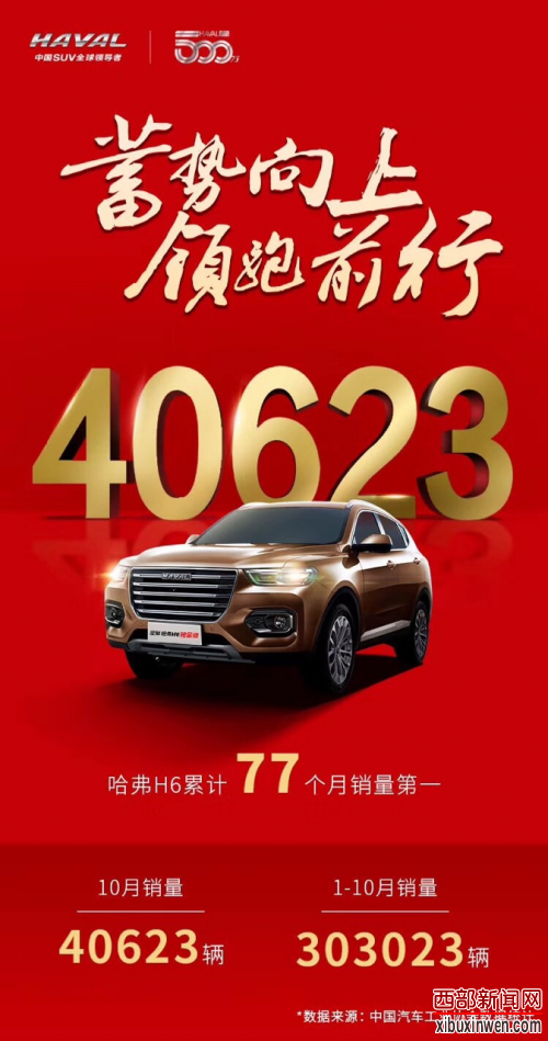 随着金九银十结束,各大车企的成绩单也陆续出炉了。哈弗作为中国SUV领导品牌,再度斩获佳绩。10月,哈弗品牌销量达到86433辆,环比大增14.68%。有着“国民神车”之称的哈弗H6,以40623辆的优秀成绩,再度取得SUV销量冠军,累计77个月SUV销量第一,堪称行业冠军“常青树”。